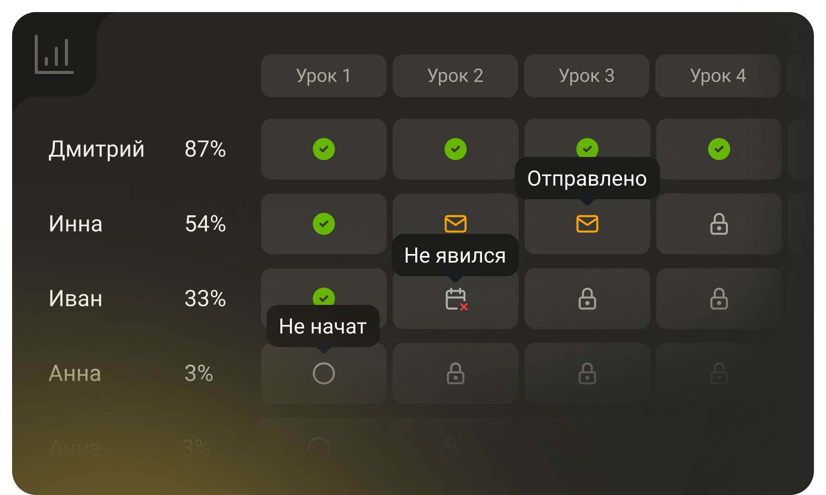Упрощайте задания, которые вызывают сложности и подключайте в помощь кураторов, трекеров, наставников